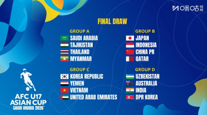 U17男足亚洲杯抽签揭晓:中国与日本、印尼、卡塔尔同组
